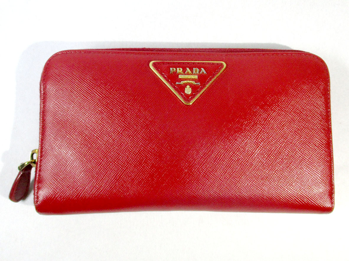 - PRADA★プラダ レザー レッド ラウンドジップ 長財布 中古★S11784