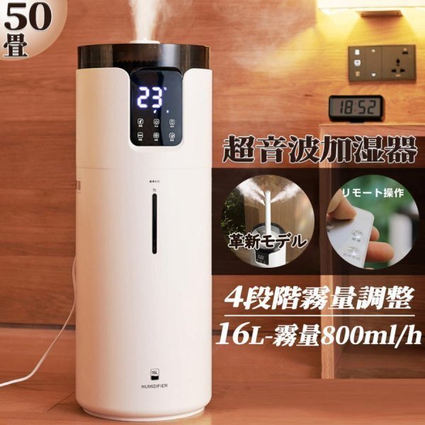 - 加湿器 スチーム式 超音波式 16L 大容量 上から給水 UV除菌 知能恒湿 霧量800ml/h 4段階霧量調整可能 12hタイマー お手入れ簡単 空焚き防止
