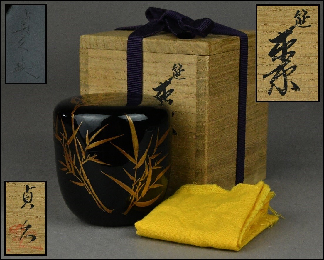 - 塗師【熊野貞久】笹蒔絵 棗 布付 共箱 茶道具 DR24-0813