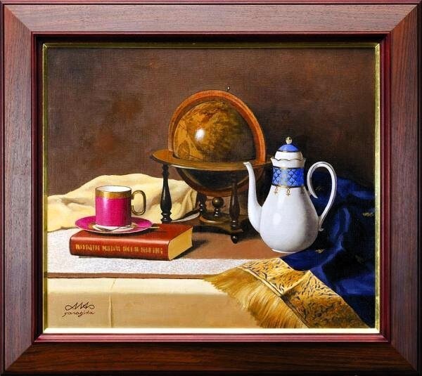 - ☆★☆ 真作 柳田正和 「地球儀のある静物」 油彩 F10号 ☆★☆
