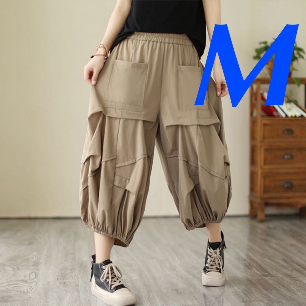 - ボトムス 7分丈 ハーフパンツ カーゴパンツ ワイドパンツ 膝下丈 パンツ カボチャパンツ ルーズパンツ ゆったり イージーパンツ ベージュ M