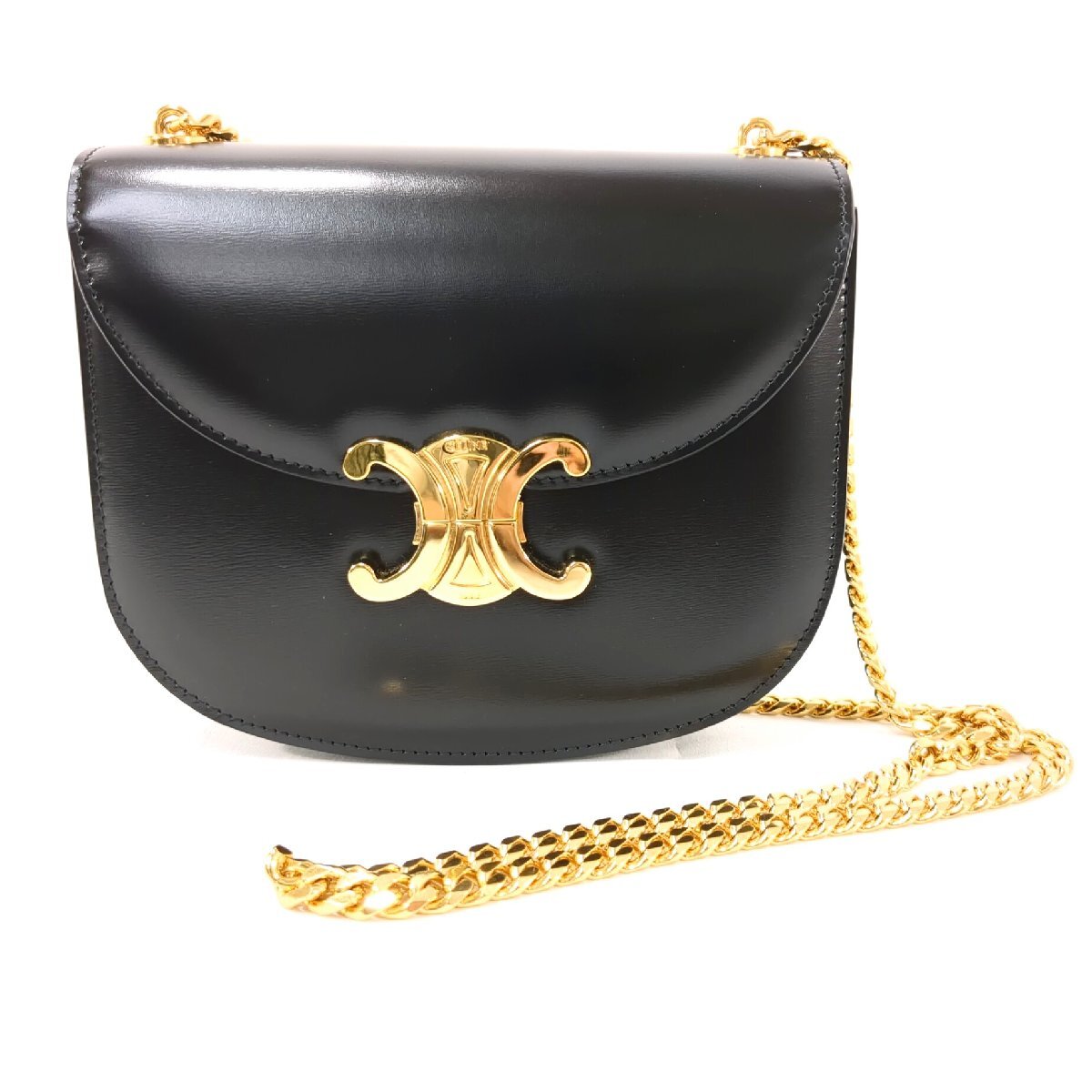 - 【極美品】 CELINE セリーヌ チェーン ブザス クレア ショルダーバッグ シャイニーカーフスキン ポシェット ゴールド金具 ブラック 黒