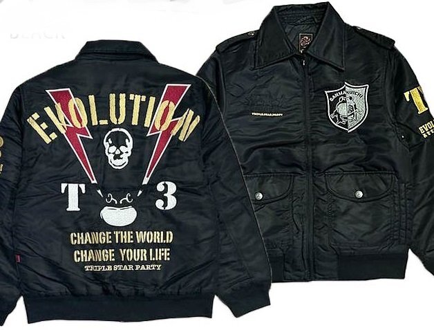 > スカルフライトジャケット◆参丸一 ブラックXXLサイズ SOU-50035 和柄 和風 刺繍 ミリタリー 蛙 カエル かえる さんまるいち