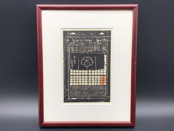 - 【木版印刷】 飛騨高山 『老舗銘菓駄菓子屋 打保屋の出格子風景図』 木製ガラス額 M1223I