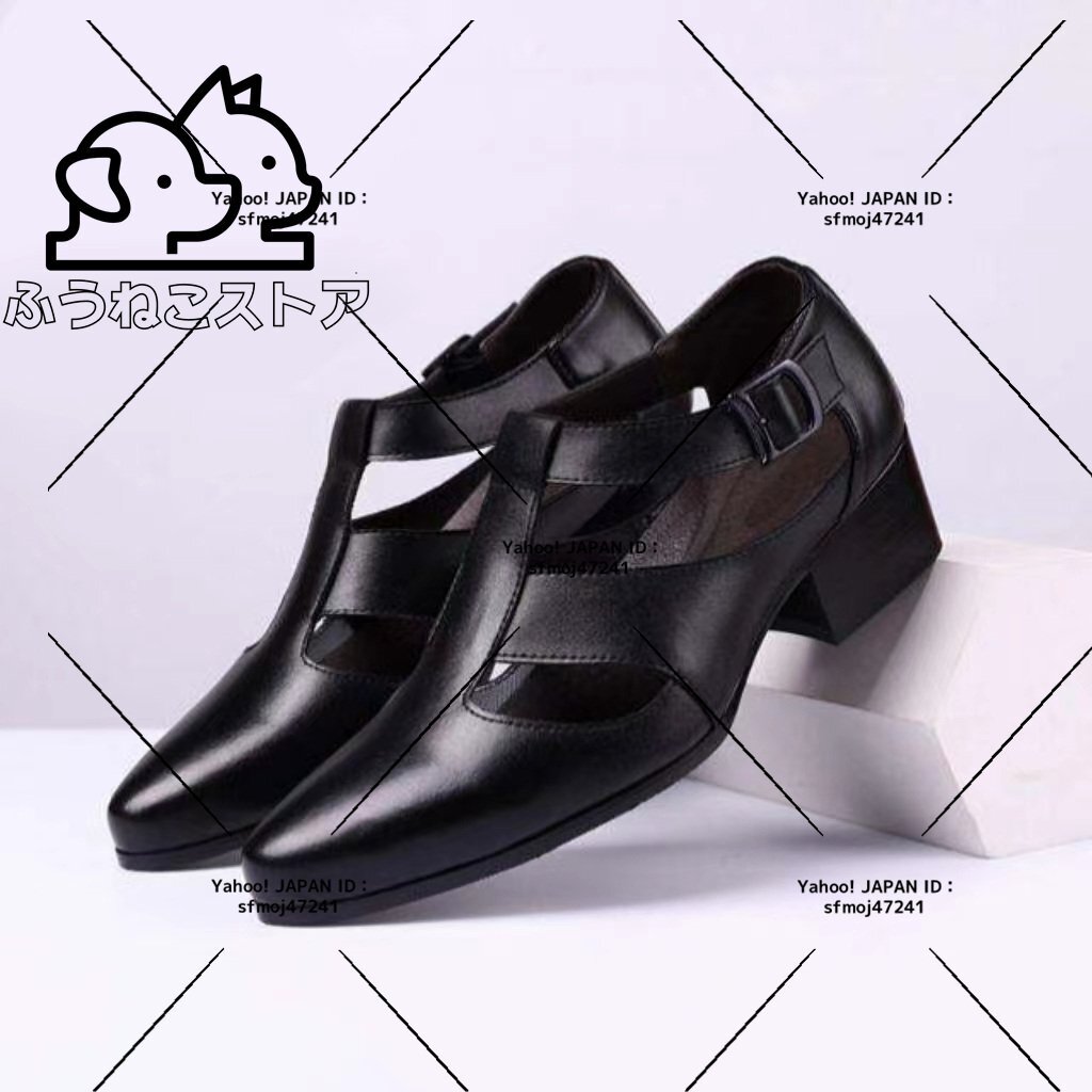 > 未使用 ビジネスシューズ メンズ サンダル 厚底 メッシュ 紳士靴 革靴 カジュアル 軽量 安い おしゃれ 黒 23.5cm~27cm