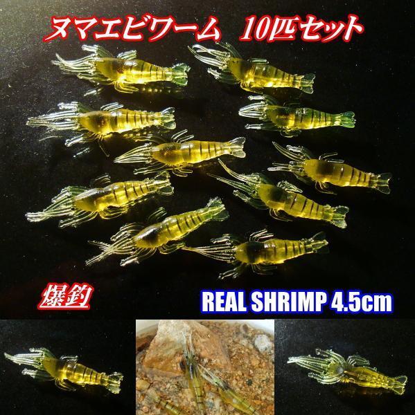 - ■爆釣■ヌマエビワーム10匹セット■4.5cm バス系/タイ系/青物/メバル/根魚★なんでも釣れる★えび・海老