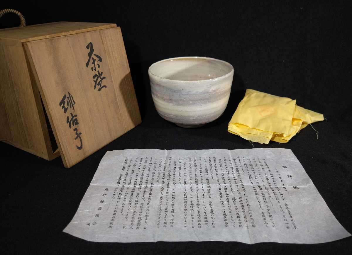 - 皿谷緋佐子 「茶碗」 灰釉 抹茶碗 共箱 共布 熊野焼 茶道具 a-50c1267