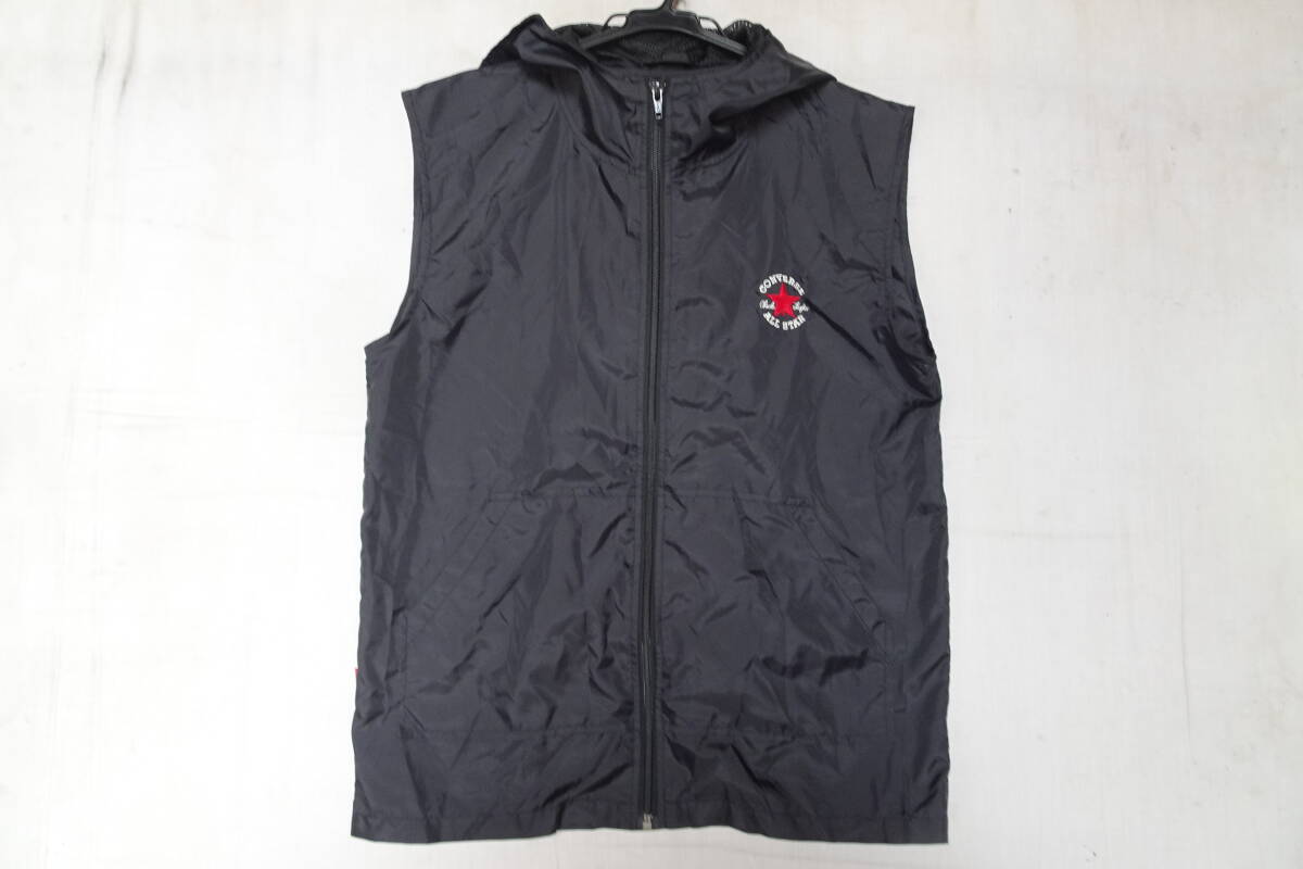 - CONVERSE/コンバース/ジュニア/スリーブレスジャンパー/フーディー/パーカー/ナイロン素材/前ジップアップ/黒/ブラック/160サイズ(8/26R)