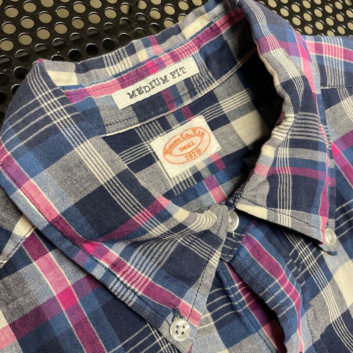 - 日本製 ビームス beams 半袖 ボタンダウンシャツ チェック S サイズ made in japan 綿 麻