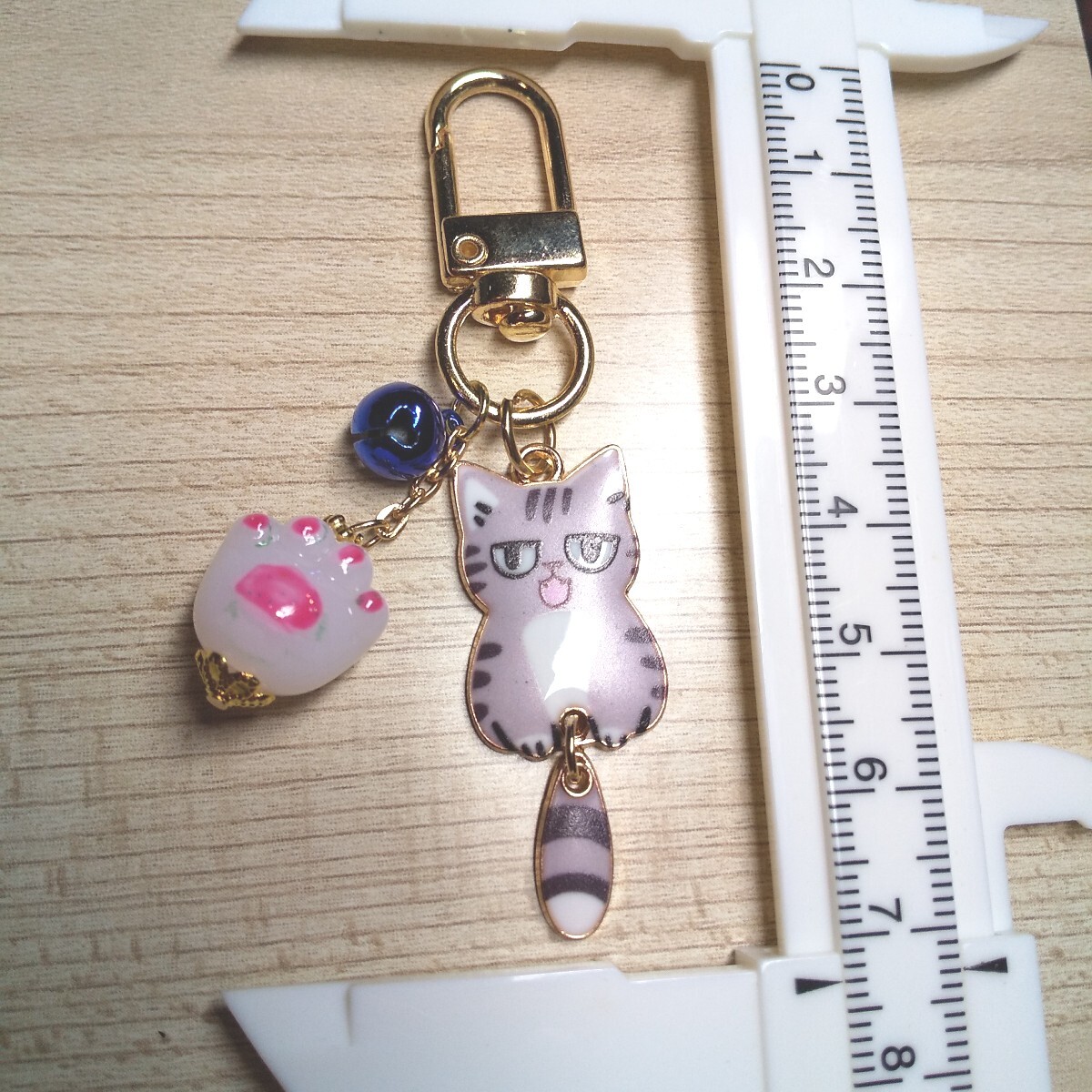 - 猫好きにはたまらん! 薄紫トラ猫チャーム 猫キーホルダー しっぽフリフリ 全長約 7㎝ ノーマルor金の選べる肉球チャーム付き ブリコラ屋