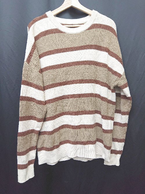 - ◇ GAP ギャップ ボーダー 長袖 ニット セーター サイズL ベージュ ブラウン アイボリー メンズ P