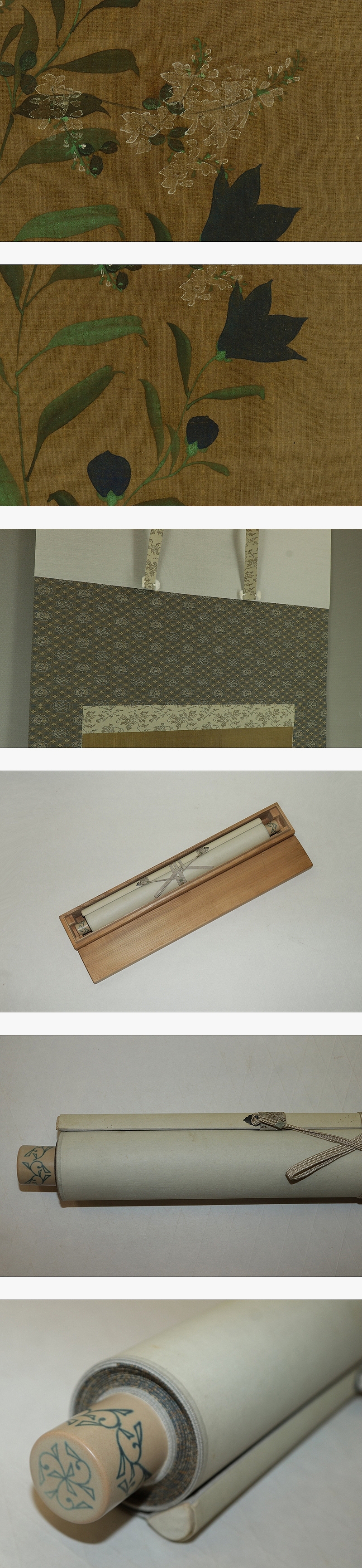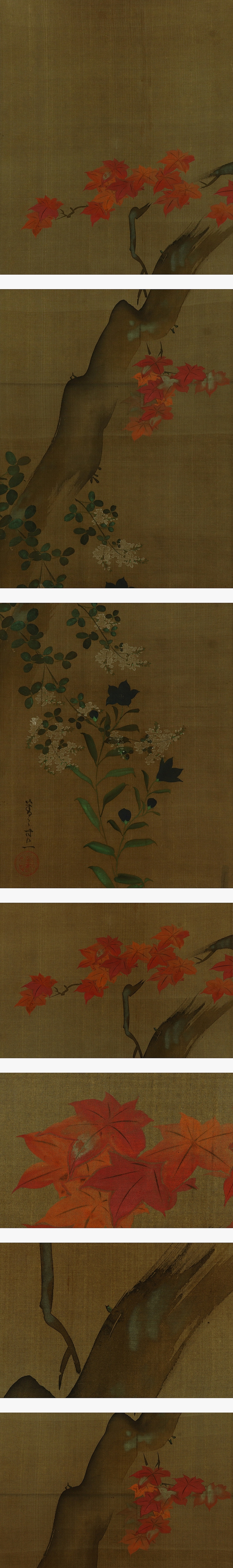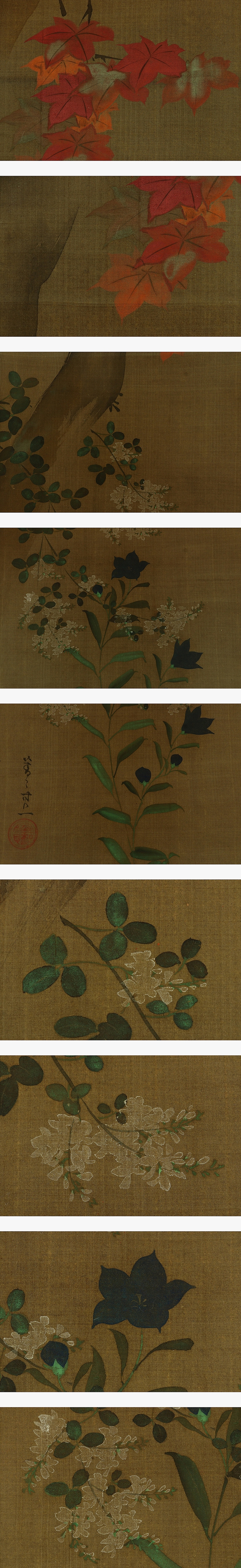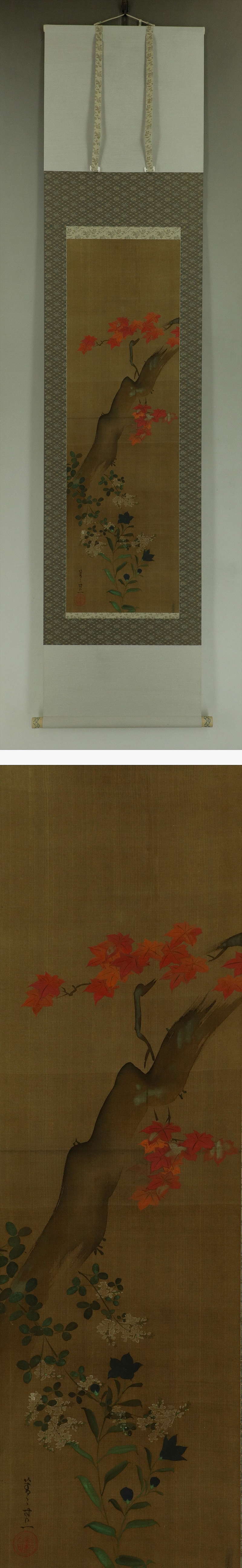 - 【模写】鈴木其一【紅葉に秋草図】◆絹本◆合箱◆掛軸 s07019