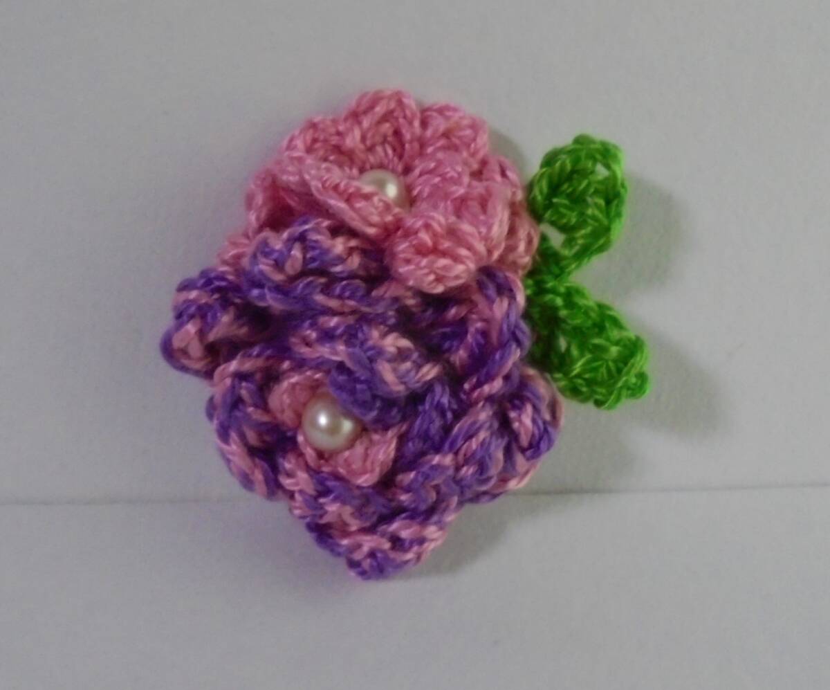 - ♪ ハンドメイド ブローチ ばら 薔薇 かぎ針編み 刺繍糸 淡水パール