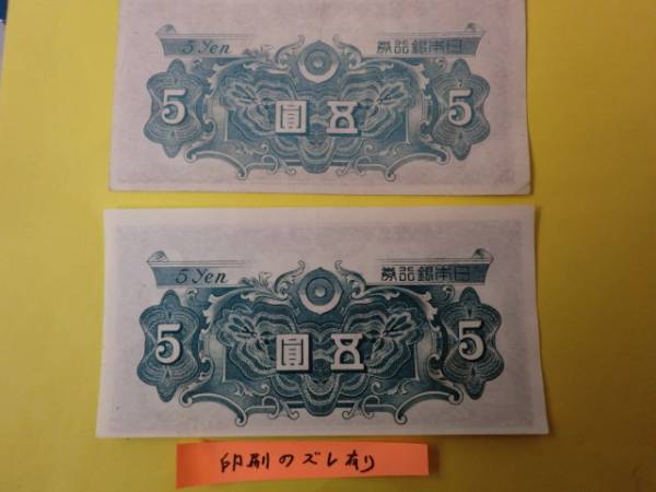 - 裏の印刷エラー ★ 日本銀行券A号5円 彩紋5円 2枚セット ★ No.9