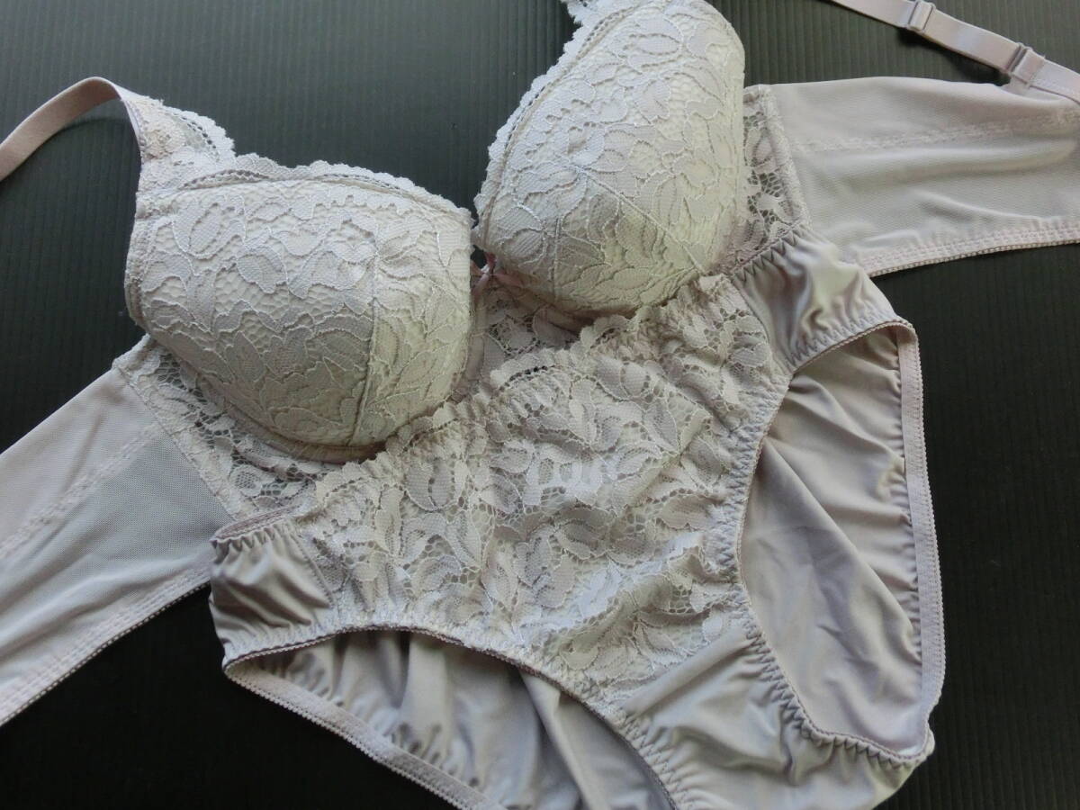 > ☆【C80 L】グレイッシュパープル リッチメイク脇高ブラジャーショーツセット(ボタニカル編みレース) 《38-8》