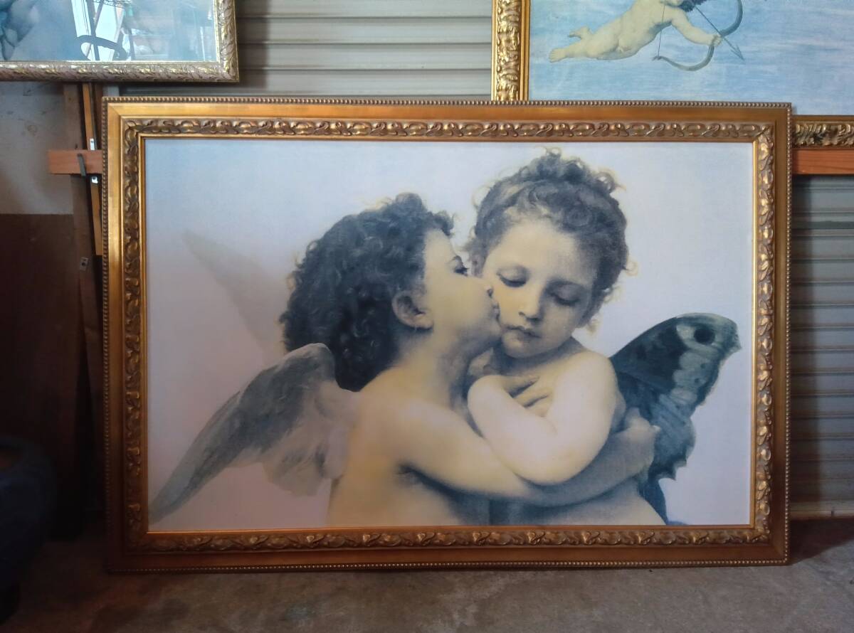 - 天使の絵 こどもたち アムールとプシュケ 特大 金縁 布プリント アート
