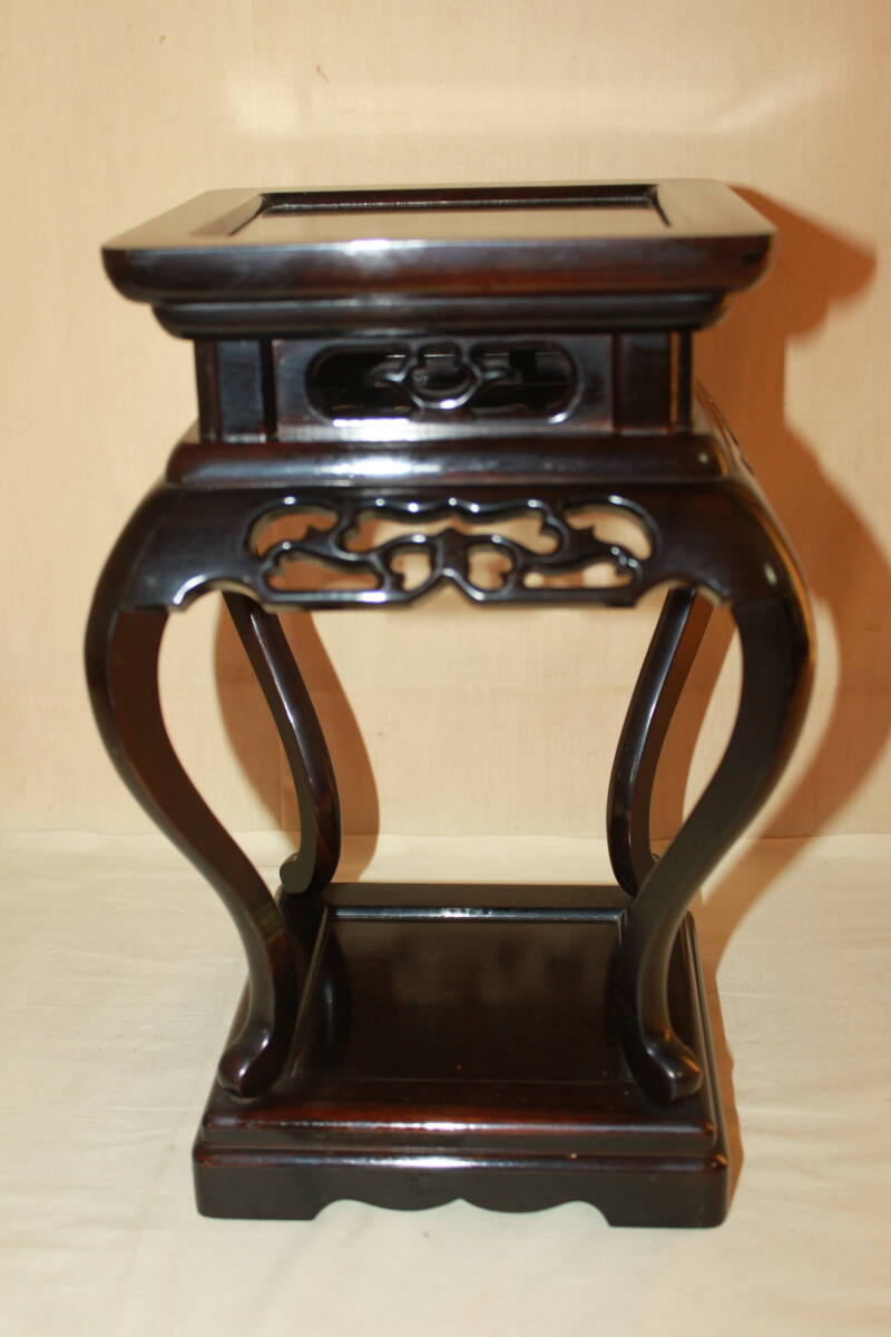 - ■唐木製 高卓 花台 飾台 透かし彫刻 花梨/紫檀/黒檀