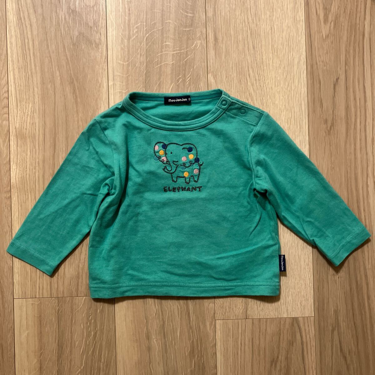 - moujonjon Tシャツ 80サイズ 長袖 送料180円 即決 ゾウ 子供服 ムージョンジョン 男の子 ボーイズ グリーン 動物 日本製