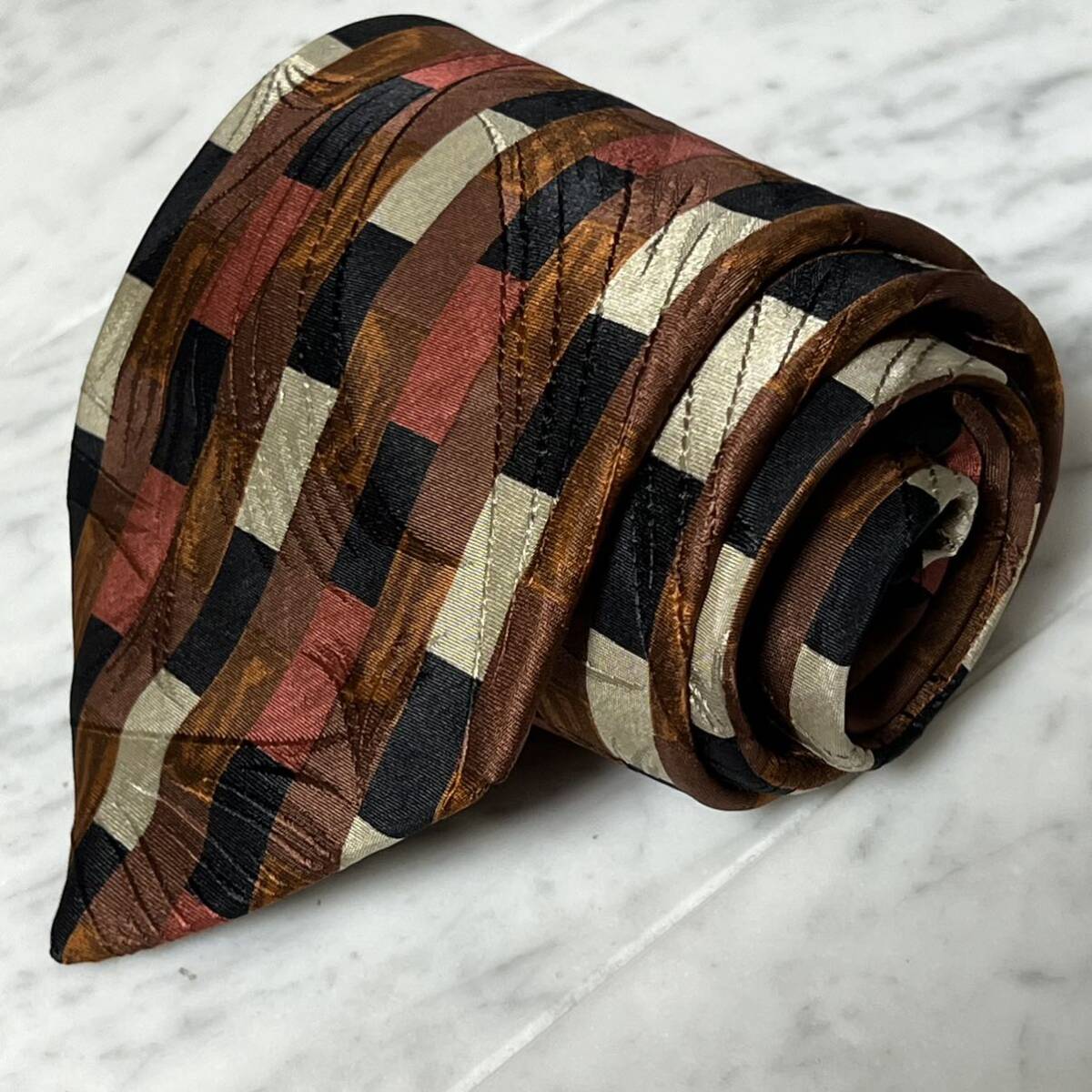 - 999円~ LANVIN ネクタイ ブラウン ブラック レッド 総柄 (GREEN B4)