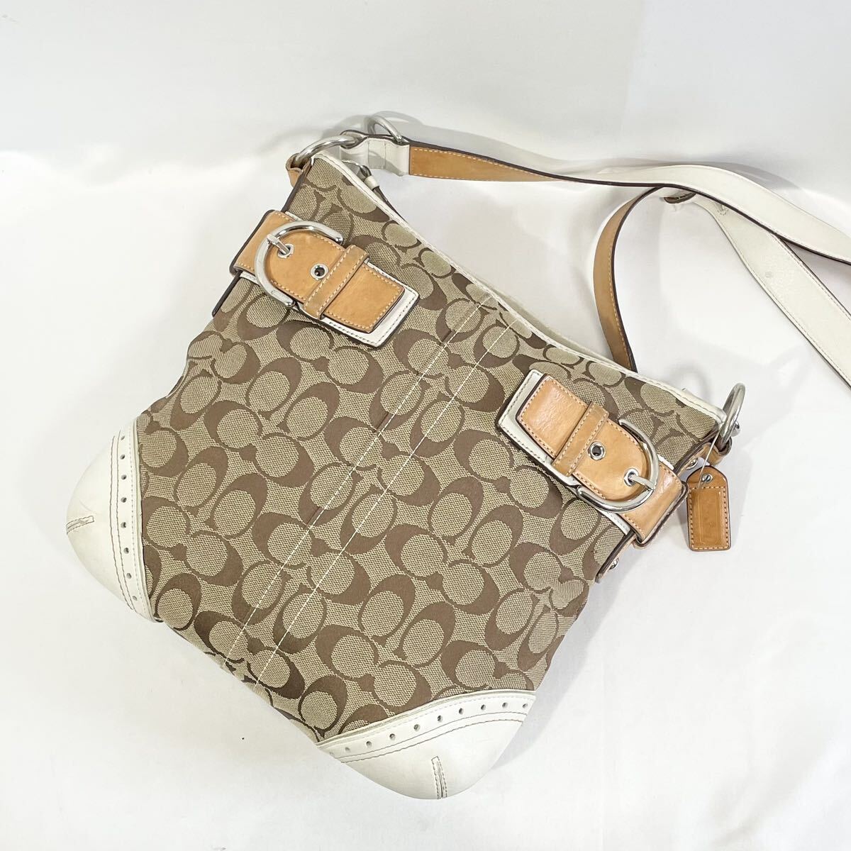 - 正規品 コーチ COACH ショルダーバッグ シグネチャー 斜め掛け キャンバス ポシェット サコッシュ 肩掛け ベージュ ホワイト 白 かばん 鞄