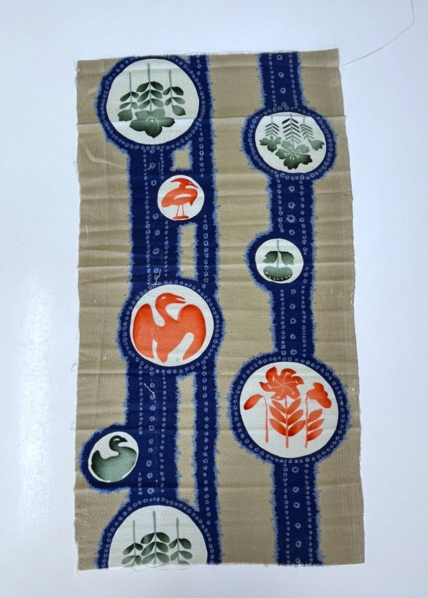 - 花とら●リサイクル端切れ リメイク 素材 細工用 花に丸 ちりめん 鳥 240803-22
