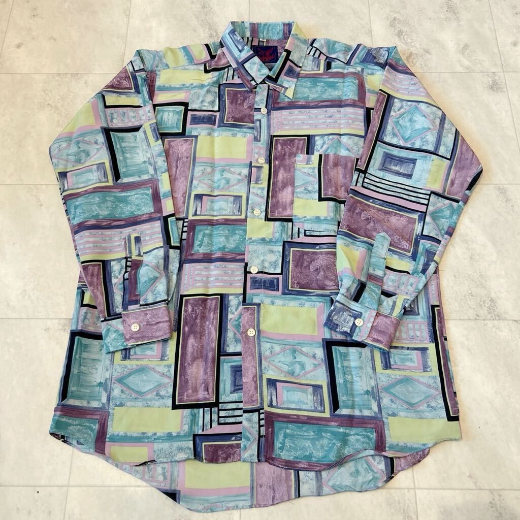 - EAGLE HOUSE 総柄 柄シャツ レトロ アート ビンテージ 長袖シャツ ポリエステル100%
