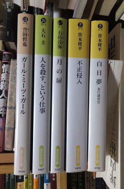> 光文社文庫 5冊 笹本稜平「白日夢」「不正侵入」・石持浅海「月の扉」・大石 圭・誉田哲也「ガール・ミーツ・ガール」
