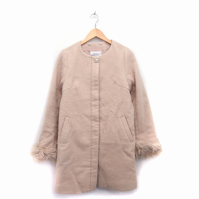 - ヘザー Heather コート アウター ノーカラー ミドル丈 シンプル F ピンクベージュ /KT35 レディース