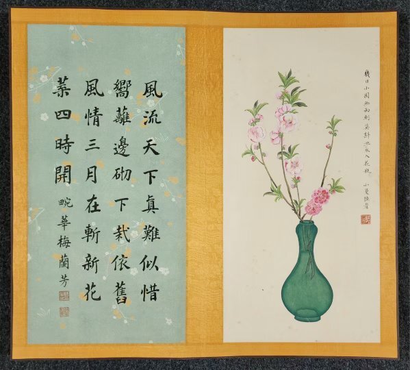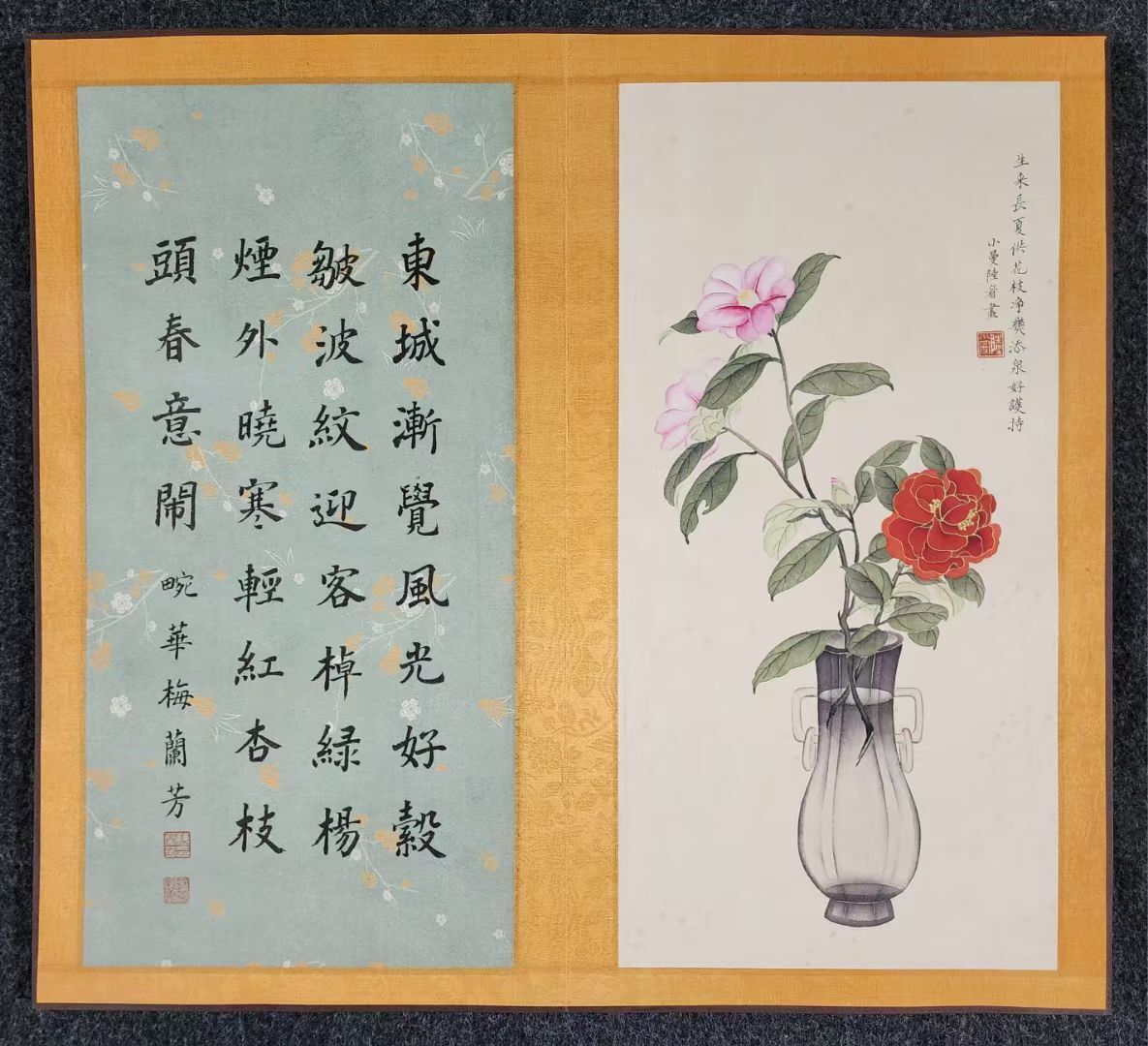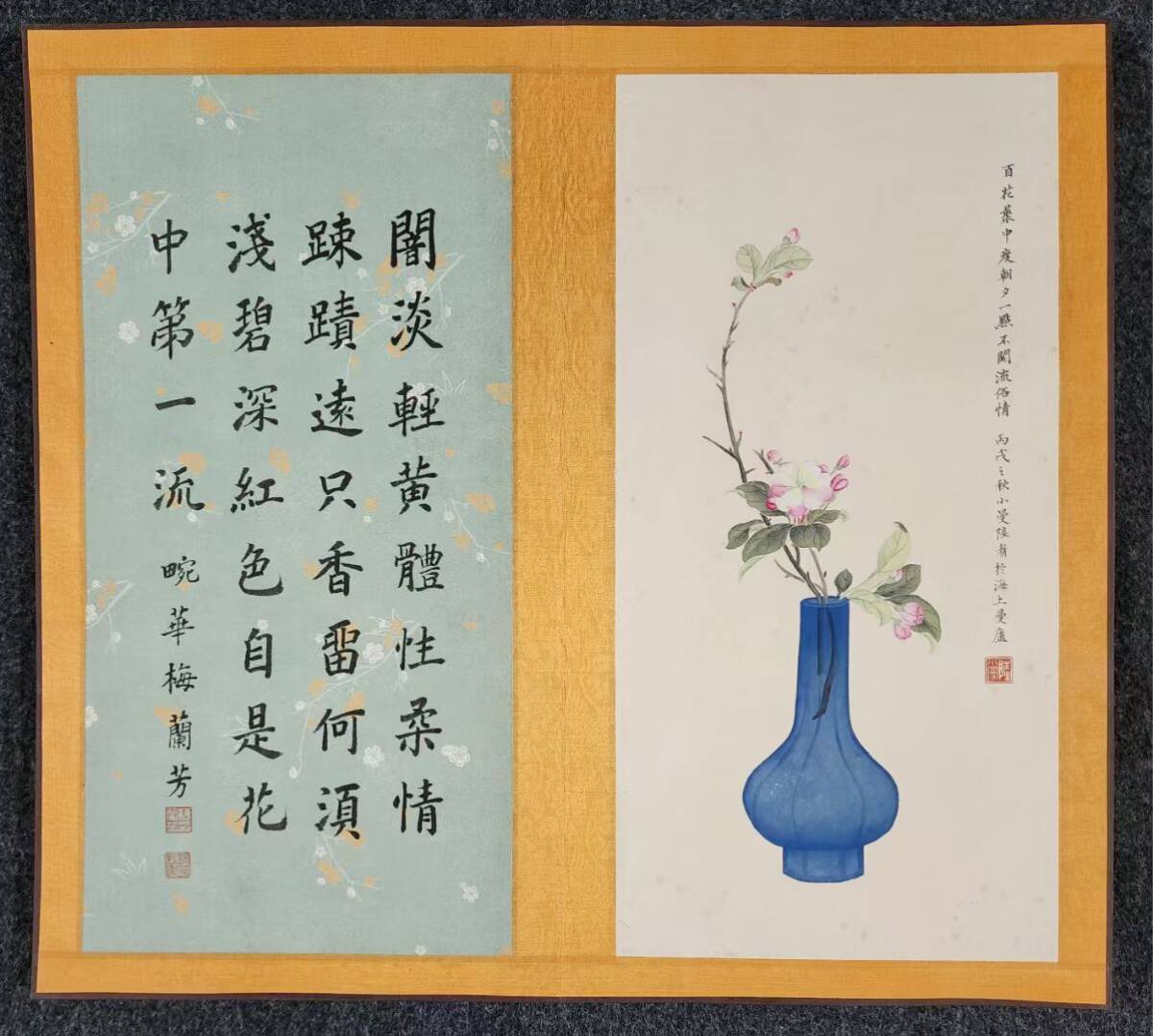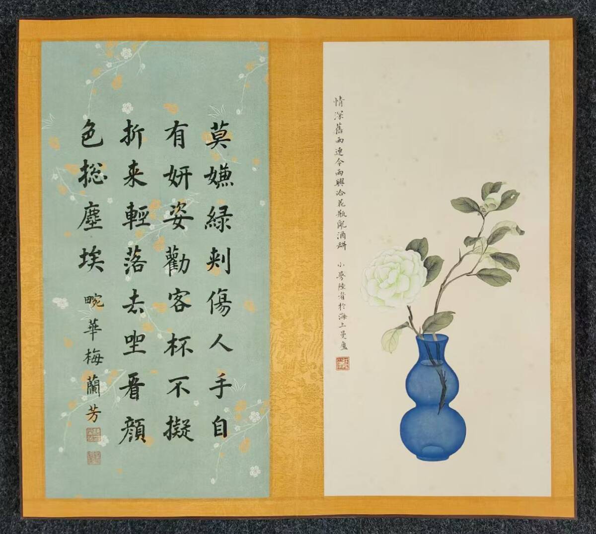 - 古美術 冊頁 中国・近現代 「陸小曼書」 紙本 【花卉図画冊 八開】 書道 真筆逸品 肉筆保証 唐物 古画 LT-240920