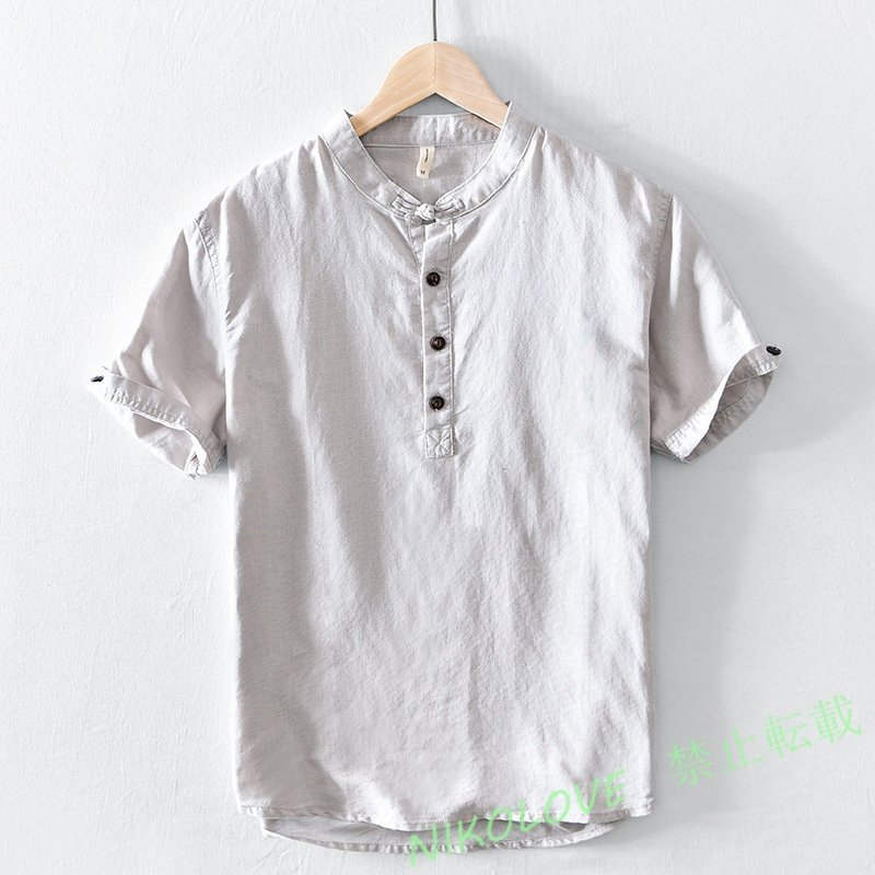 - 新品 半袖シャツ リネンシャツ 綿麻混 プルオーバーシャツ 夏服 カジュアルシャツ サマーシャツ トップス 灰 LH308