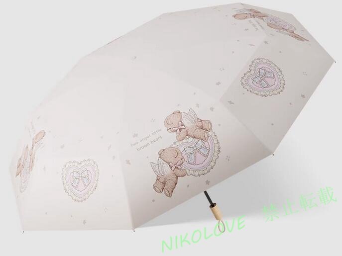 - 新品晴雨兼用 折りたたみ傘 夏 3つ折り 日傘 UVカット 遮光 遮熱 日焼け防止 雨傘 日よけ 紫外線カット 98cm 天使熊柄 LJ824