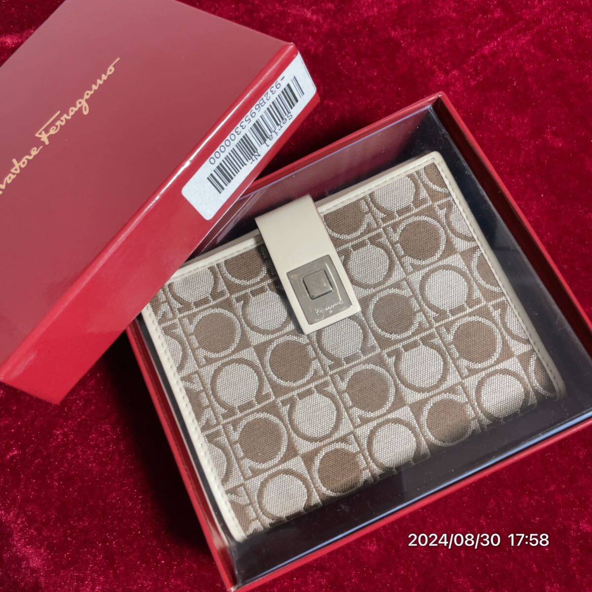 - 極美品 Ferragamo サルヴァトーレフェラガモ ガンチーニ 総柄 二つ折りウォレット 財布 箱付