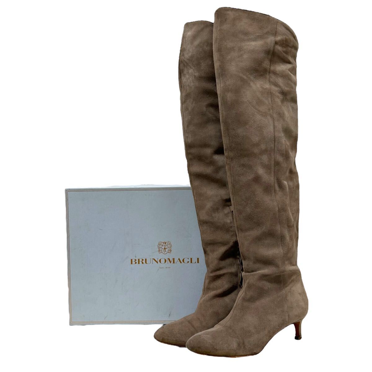> ※u2 【箱付き】BRUNOMAGLI(ブルーノマリ) ヒールニーハイブーツ サイズジップ スエード ブラウン イタリア製 表記35.5(22.5~23cm相当)