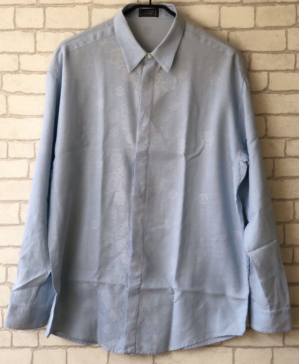 > [AHB]06-USED GIANNI VERSACE ジャンニ・ヴェルサーチェ ジャンニ・ヴェルサーチ 長袖シャツ 水色 柄 メンズ サイズ:52