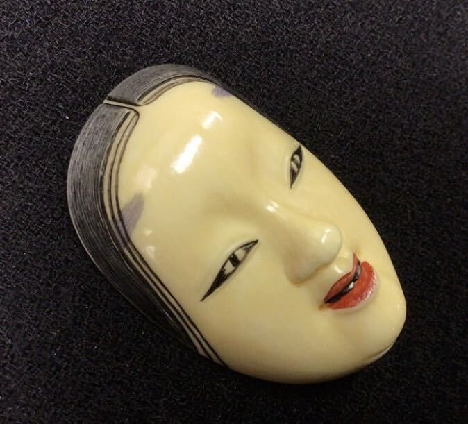 - 【751】送無 帯留め 能面 鯨歯 在銘 お福 お多福 小面 おかめ 飾