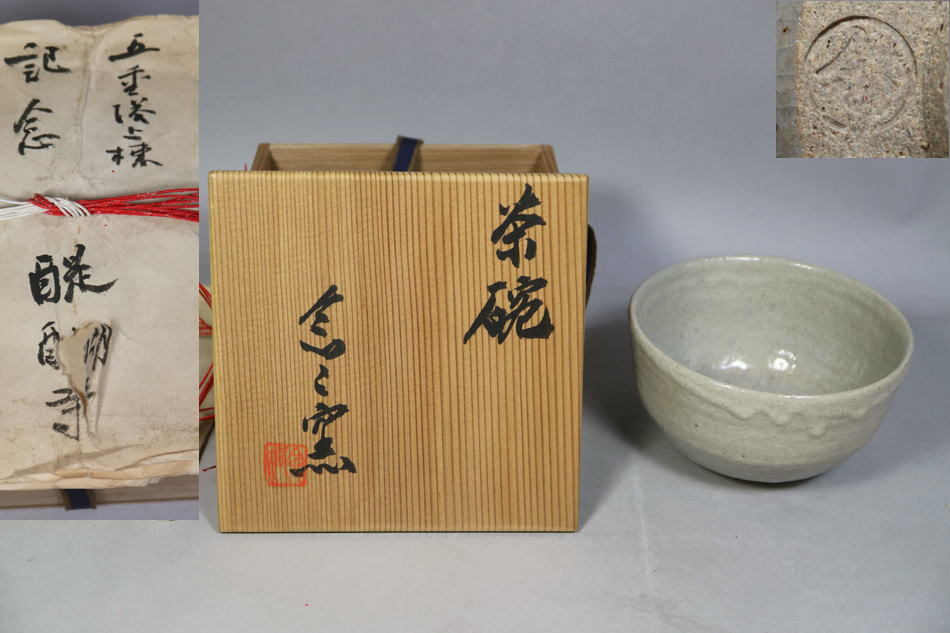 > ty9) 念々窯(念々洞)朱印「茶碗」(念)陶印 (共箱) ・醍醐寺 五重塔上棟 記念品 <抹茶道具 茶器
