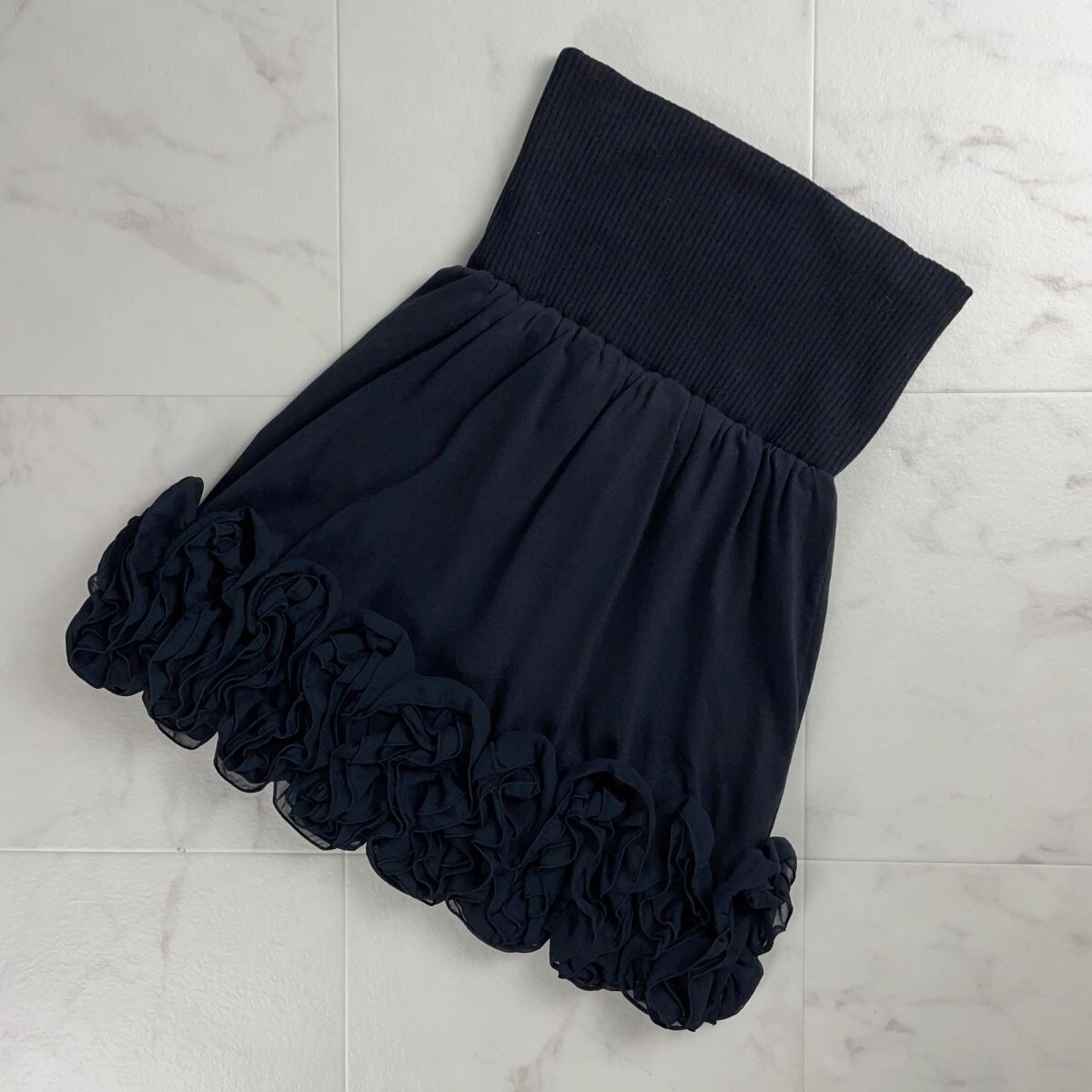 > 美品 GRACE CONTINENTAL グレースコンチネンタル ハイウエストフレアスカート ウエストゴム 膝丈 裏地あり 黒 ブラック サイズ36*SC1608