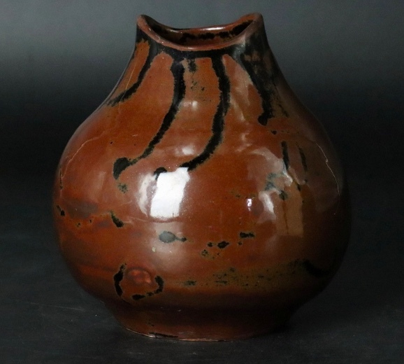 - 本物保証 北大路魯山人 益子焼 飴釉花生 高12.3cm 花入 合箱 本物返品OK 240710ー3