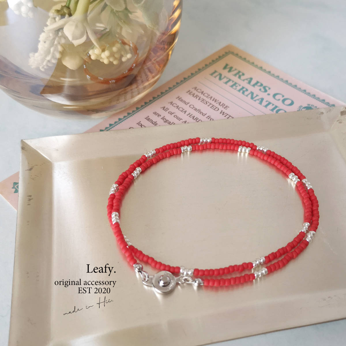 - ワインレッドのビーズネックレス ビーズアクセサリー シルバー シンプル カジュアル チョーカー ショートネックレス