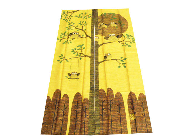 - 送料無料【新品】のれん 【金運ふくろう】 85cm × 150cm