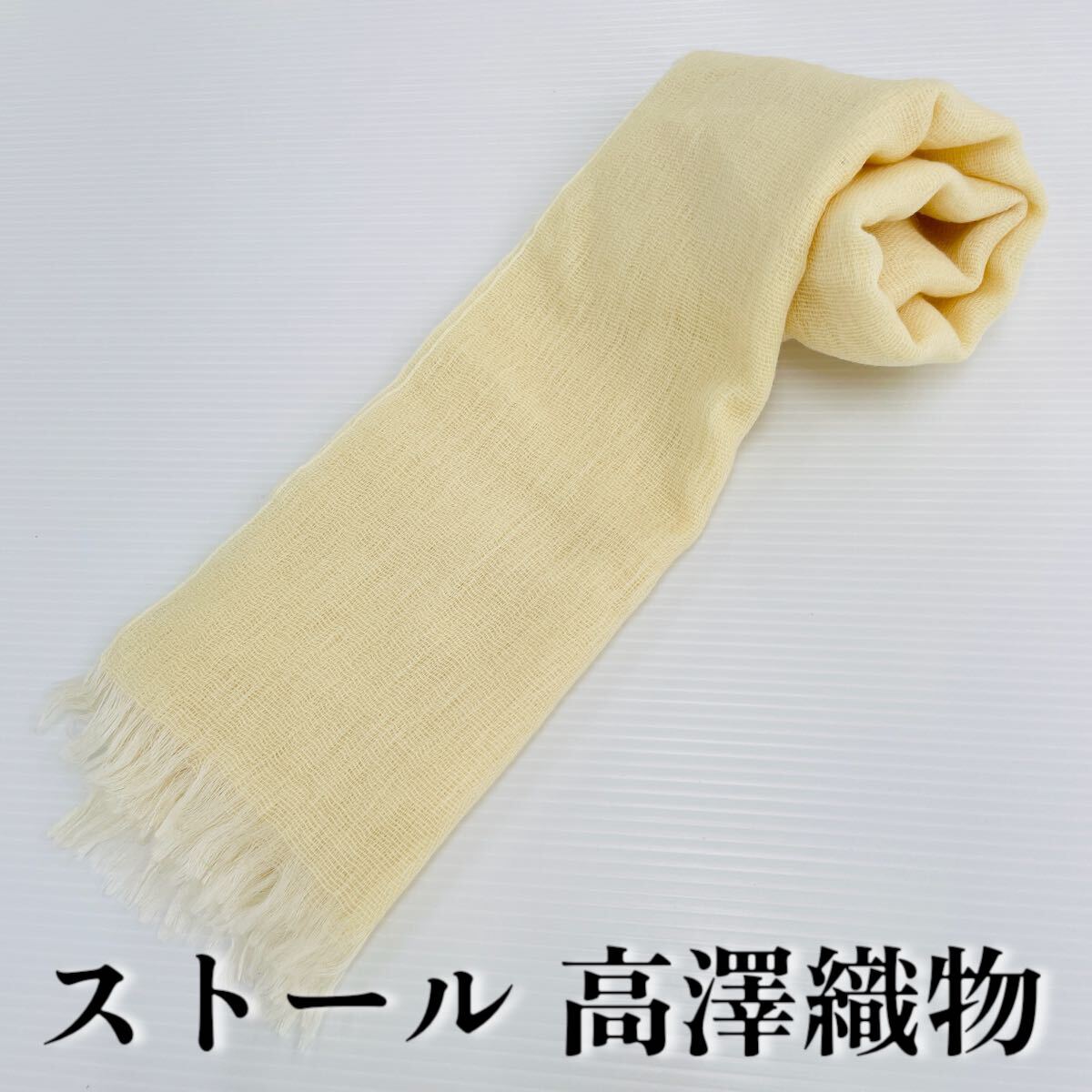 > 【ストール 高澤織物】未使用 カシミヤ? 黄色 白 秋冬 スカーフ ショール 肩掛け 膝かけ 国産 日本製 防寒 #0263-371Z1