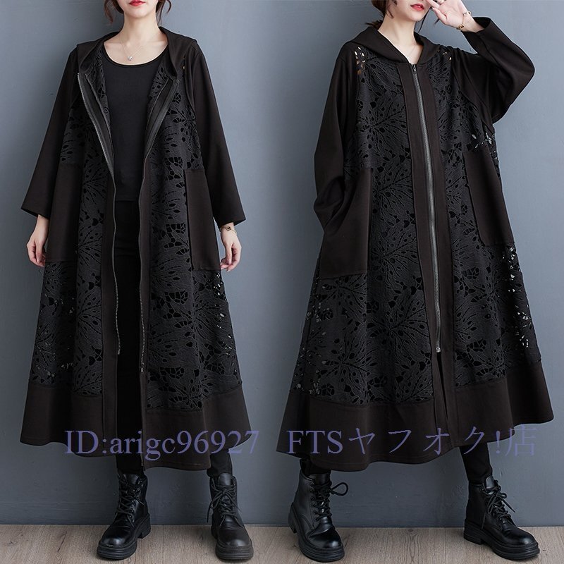 - A6086☆新品秋 レディース カジュアル ゆったり大きいサイズ 体型カバー 切り替 レース フードつき コート F