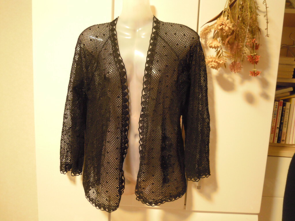 - 【三】【ずっと使える】レース編みカーディガン 袖口広め ブラック 重ね着 L 手首細見え セクシー 使いやすい