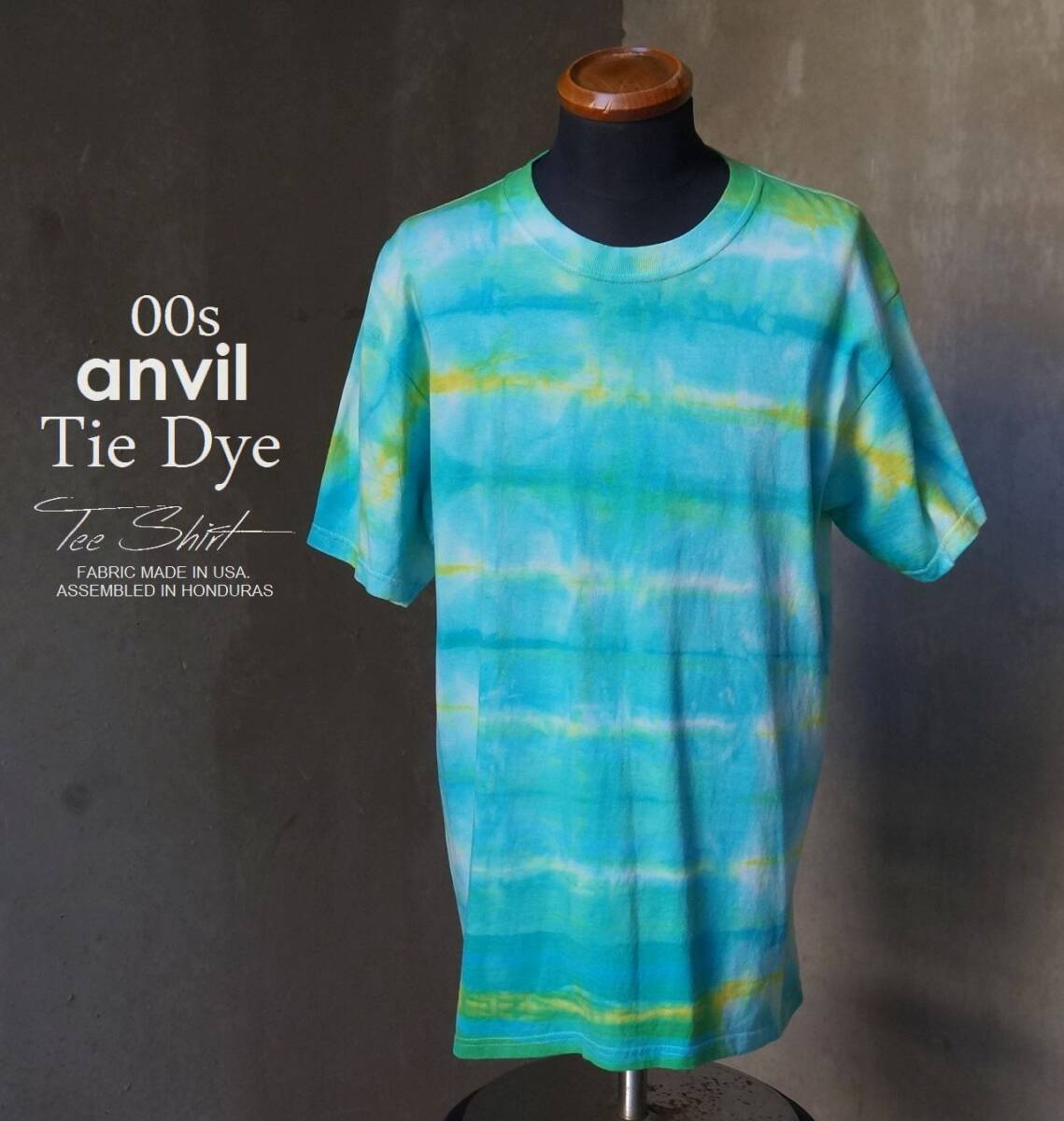 > 00s USA/HONDURAS製 アンヴィル anvil 水色×黄色 タイダイ コットン 半袖 Tシャツ L