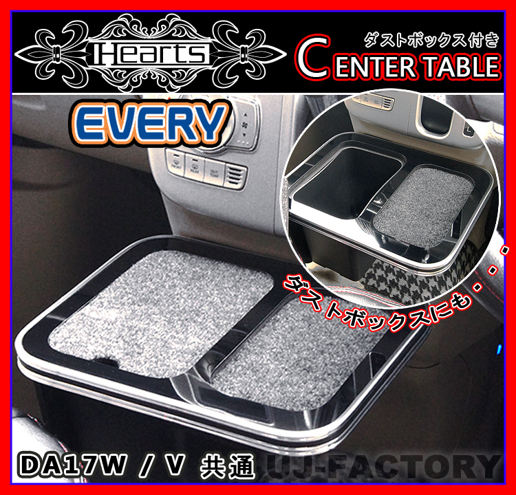 > 【Hearts(ハーツ)】★ダストボックス+フロントテーブル(ピアノブラック)★エブリィワゴン DA17W トレー付車内のごみをスッキリ収納