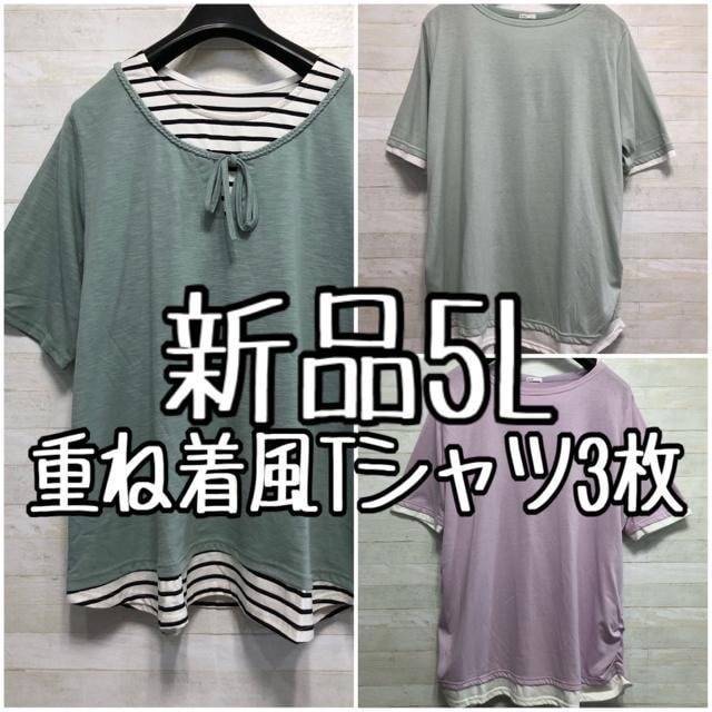 - 新品☆5L♪くすみカラー♪重ね着風おしゃれTシャツ3枚セット☆x872