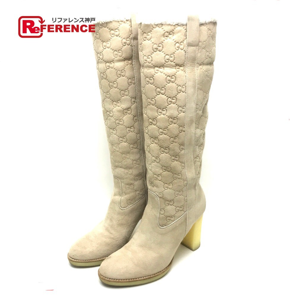 - GUCCI グッチ 靴 シューズ ロングブーツ スエード GG ブーツ スエード 35 1/2 ベージュ レディース