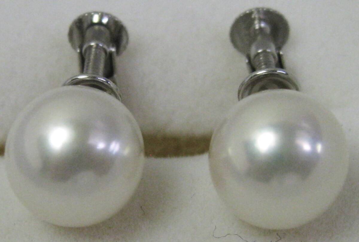 - 【東京 谷中 質屋おぢさん】ほぼ未使用K14WG 14金 パールイヤリング アコヤ真珠 約8.5ミリ バネ式