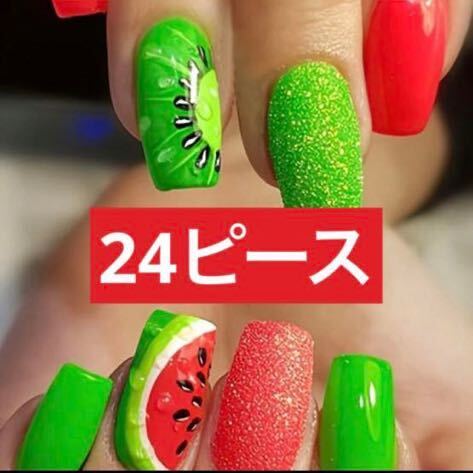 - 夏 サマー スイカ キウイ ラメ ネイルチップ 24ピース 接着剤やすり付き
