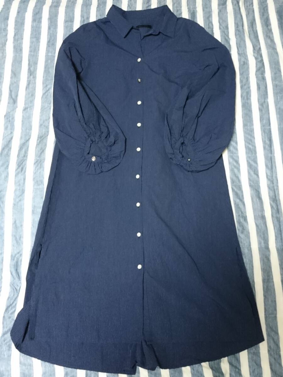 - CYNICAL シニカル 長袖シャツワンピース サイズ02 M ネイビー 紺 ストライプ レディース ボリューム袖 バルーンスリーブ